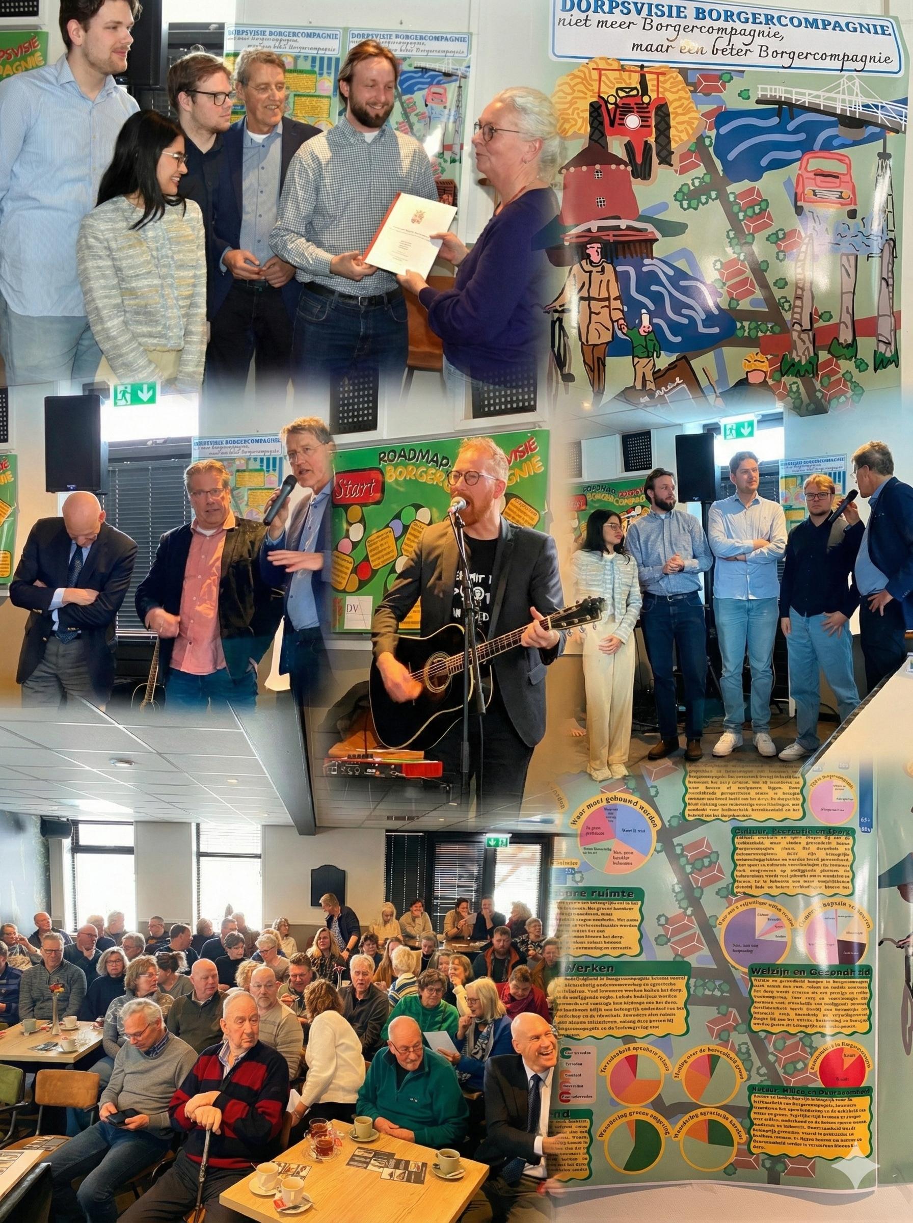 In een bomvol dorpshuis, met dagvoorzitter Eric van Oosterhout, werd er bij alle punten kort stil gestaan. Mede door de enorme response op de enquête werd het goed inzichtelijk hoe de inwoners staan in de samenleving / het leven en hoe zij graag de toekomst van Borgercompagnie zien.